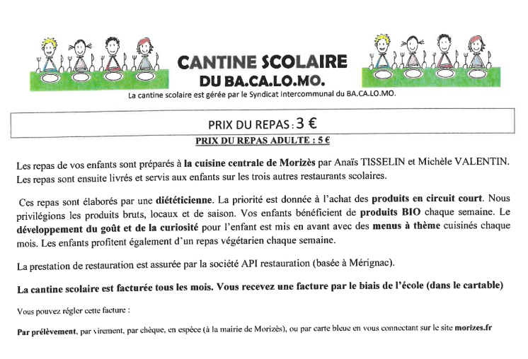 - la gestion de la cantine scolaire : gestion comptable, élaboration des menus, préparation, livraison et service des repas sur chaque site.