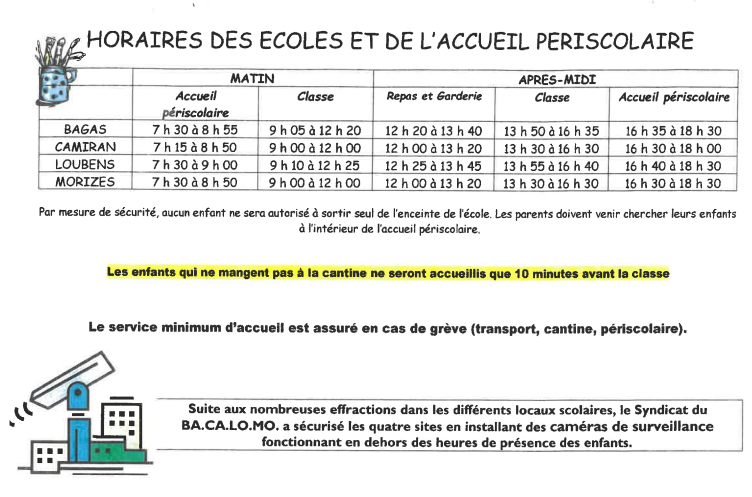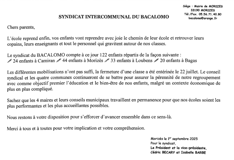 Le Syndicat Intercommunal de Regroupement Pédagigique du BACALOMO (SIRP) a pour objectif principal le maintien d' une offre scolaire de qualité pour nos enfants et le bon fonctionnement administratif du RPI.